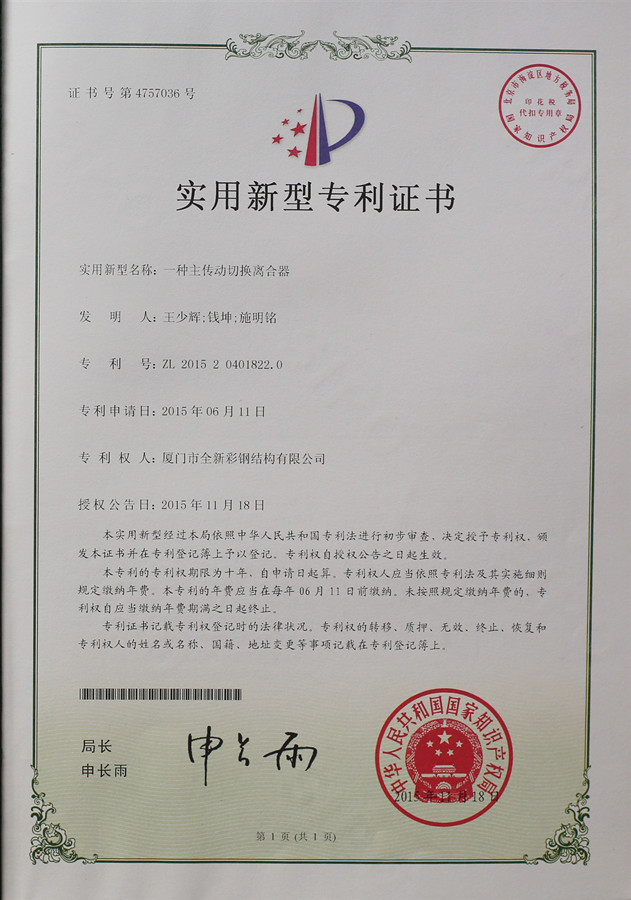 Giấy chứng nhận sáng chế của Auto Cluth